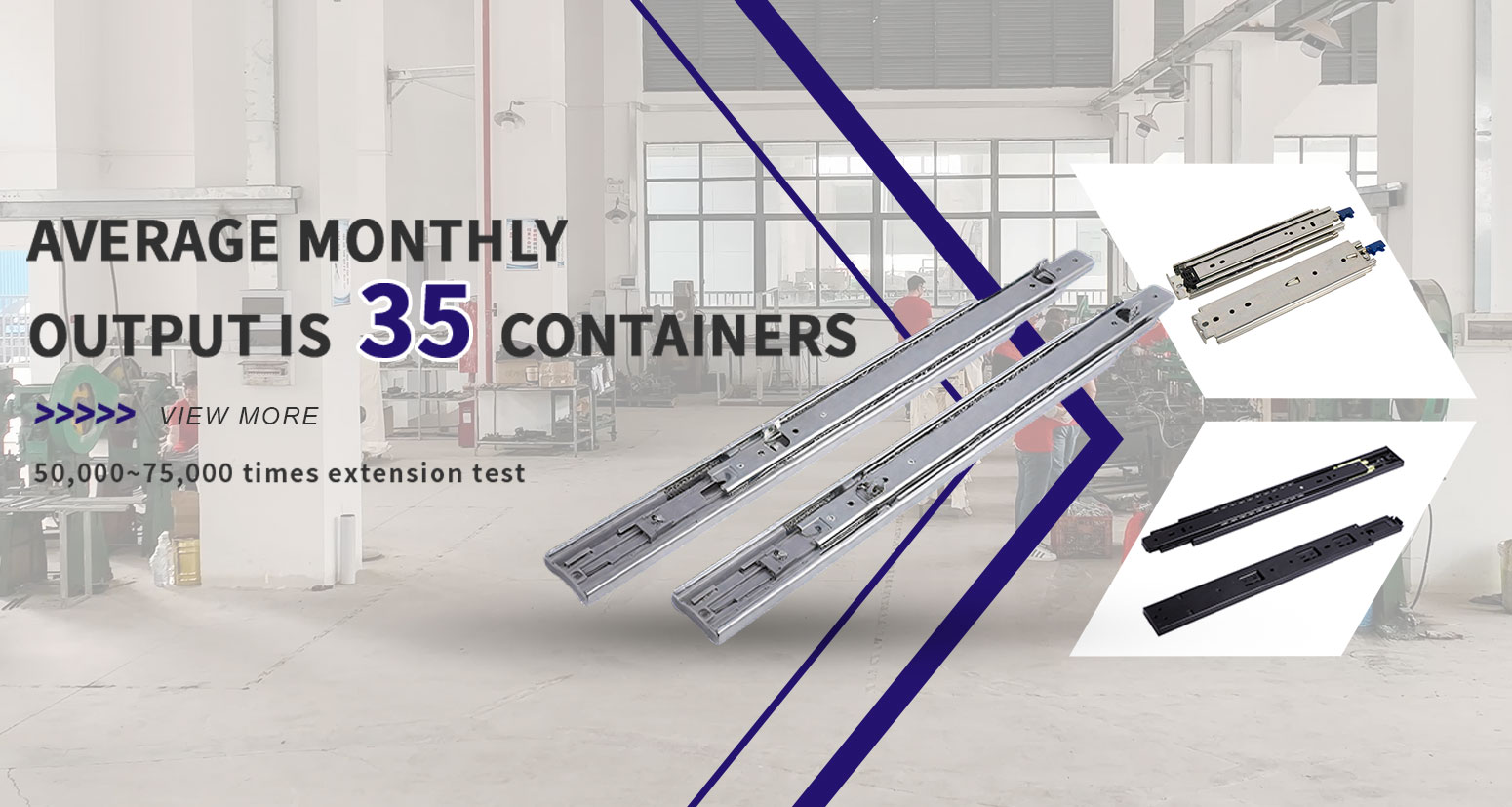 Our company covers area of more than 6,000 square meters and has employees of more than 100.We specialize in the development, design, manufacture, sales and maintenance of all kinds of high-grade Ball Bearing slides, Concealed Slides tandem box, hinges, sofa legs and other kinds of furniture fittings.Our Production Lines include: Broaching, stamping,half & full automatic assembling, automatic packing.